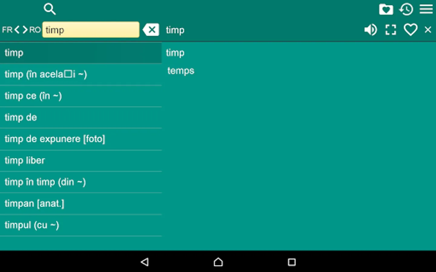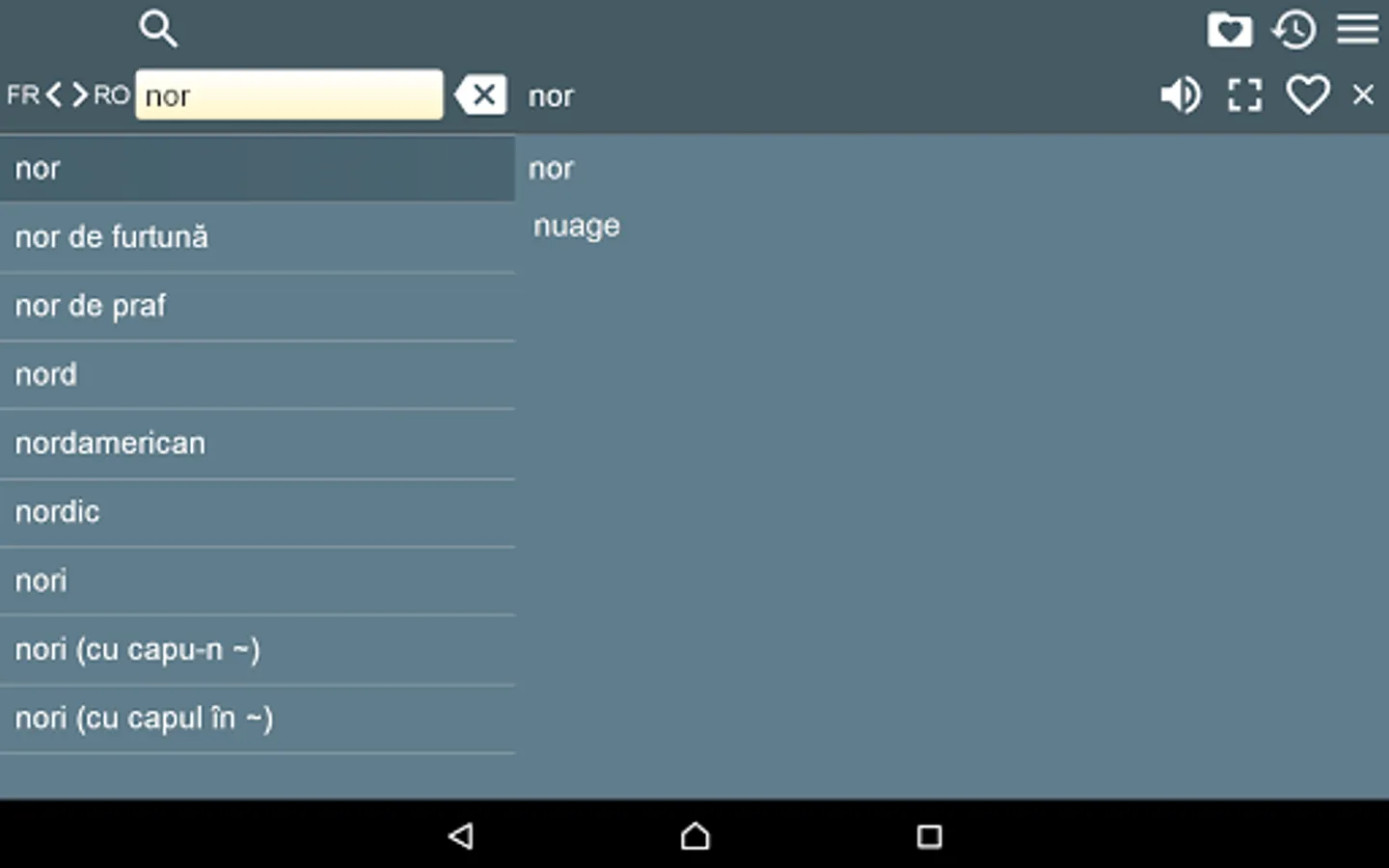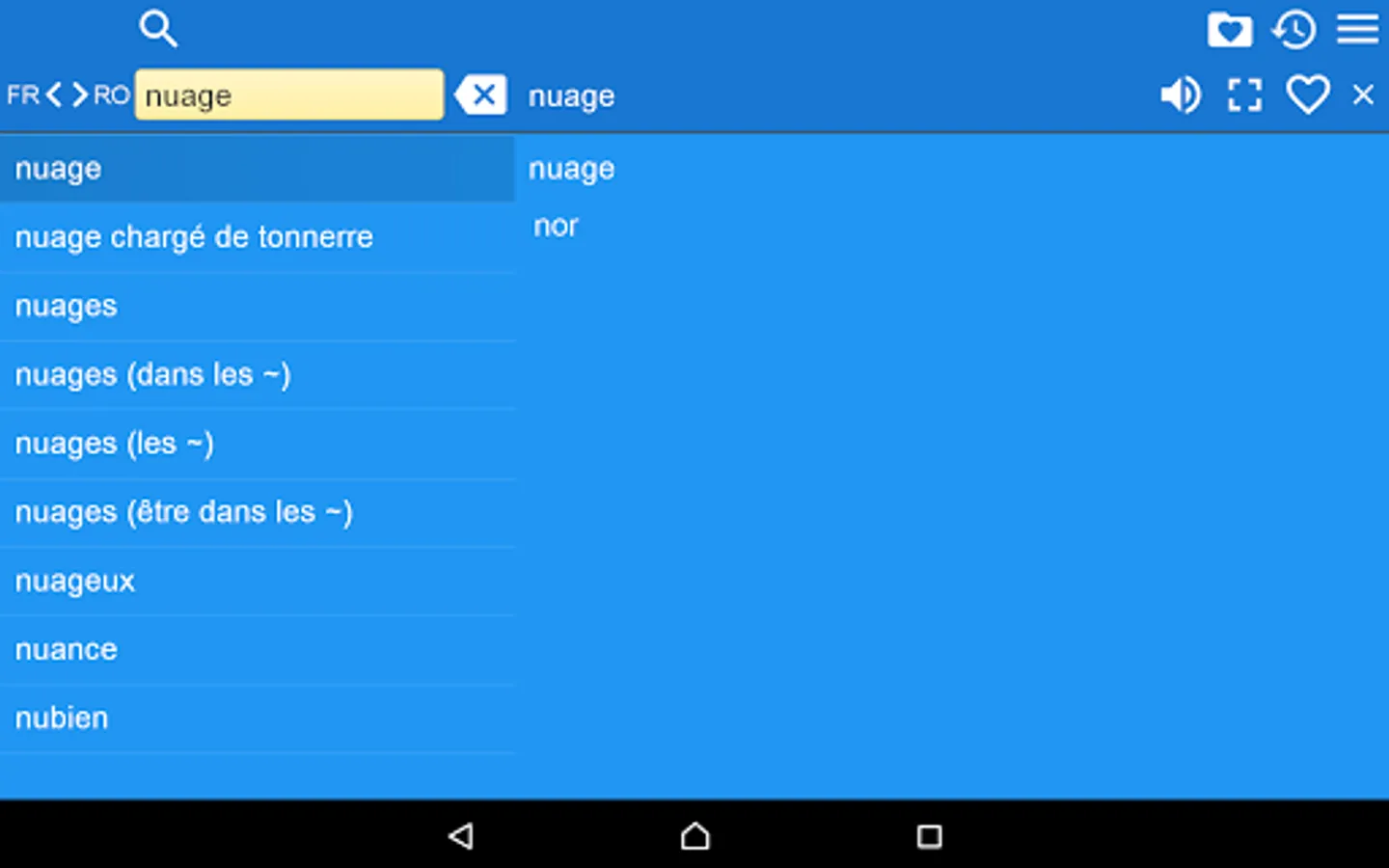 2. Favorites – you are able to add words to favorites list by clicking the “star” icon.
