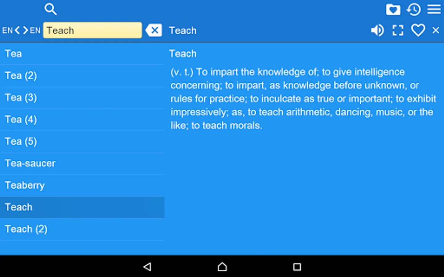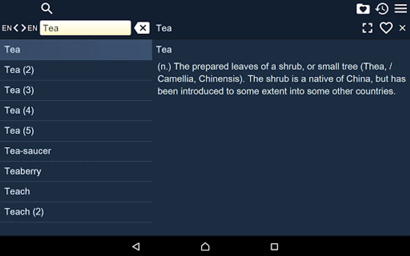 2. Favorites – you are able to add words to favorites list by clicking the “star” icon.