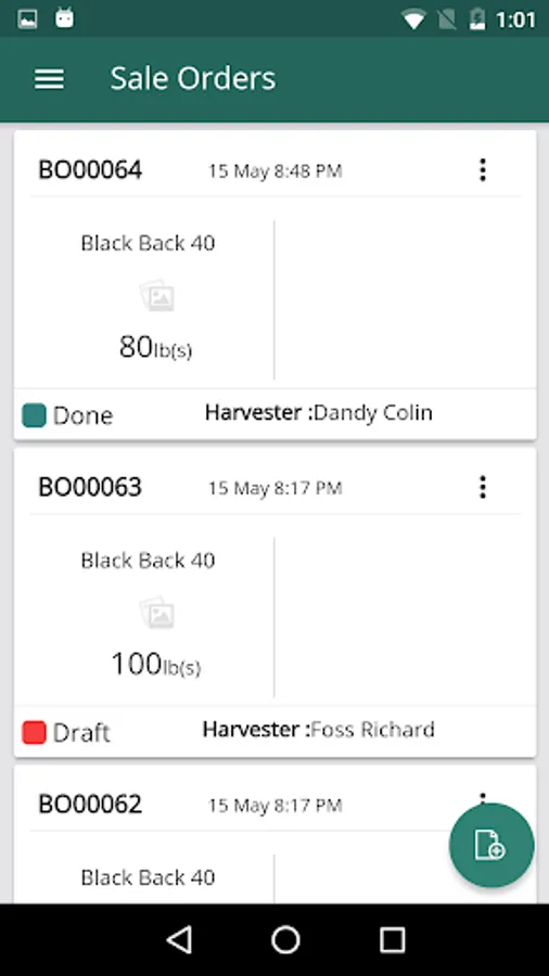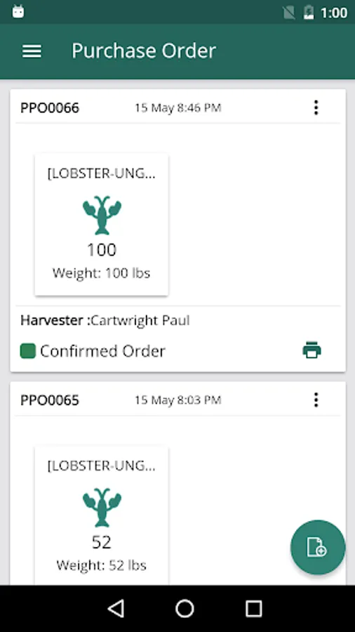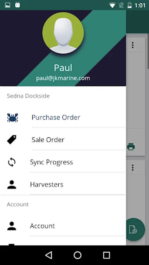 Harvestor can register his catch with information like approx. weight, a variety of species involved, catch location using the Smart Phone application communicating with our ERP.