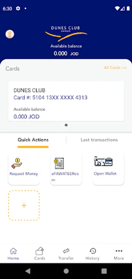 • Send and receive money between Dunes cardholders
