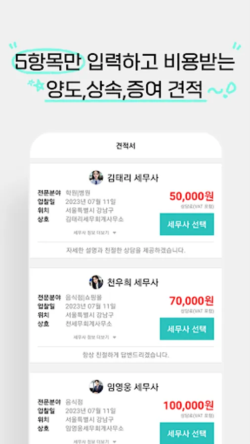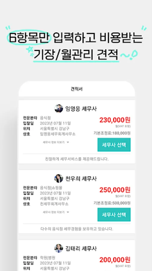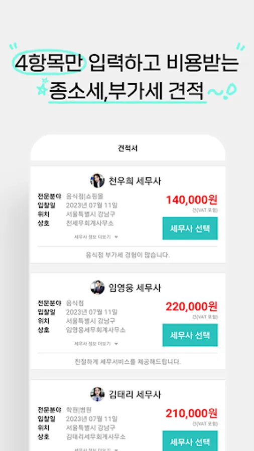 3. Select the tax agent that is right for you by looking at the cost and tax agent information in the quotation.