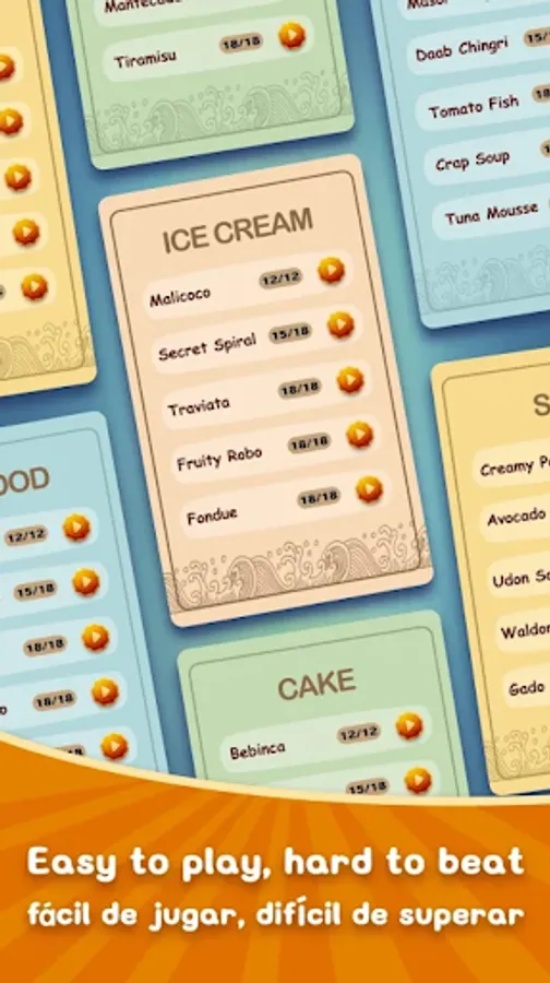 ► Difficulty increases along with levels. Easy to play, but hard to beat!