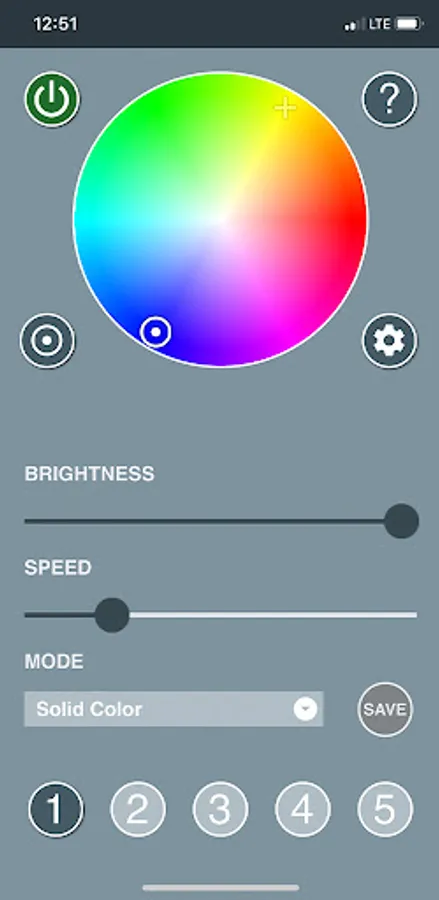 Once the Android device is connected to the Bluetooth control box, all of the power to control colors, patterns, speed, brightness and many more options rests in the palm of your hand. Select virtually any solid color via the Integrated Color Wheel and choose from 15 unique lighting patterns from the Mode Dropdown Menu. Save up to 5 favorite customized colors and patterns for quick and easy recall using the in-app presets. With a few swipes of the sliders, adjust the brightness levels and speed intensity of the lighting patterns.
