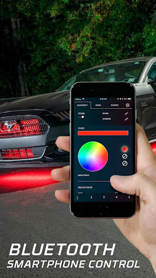 Once your device is connected to the Control Box, you have the power to change Colors, Modes, Speed Settings, Brightness Settings and much more. Simply by clicking on the LEDGlow Automotive Control App's Color Wheel, you can choose up to three different colors to run for selected sections of your car or truck, including the Underbody, heel Well, and Interior lights. You also have the option to run nearly a million colors for each location, which is accessed by turning on the Million Color Cycle. With limitless customization options, your vehicle’s lighting system is sure to turn heads. If you ever wanted access to multiple colors and mode options for your car or truck’s Underbody, Wheel Well and Interior, now’s the time! Afterwards, you can set your favorite configurations to any of the 5 programmable presets to show off your ride.