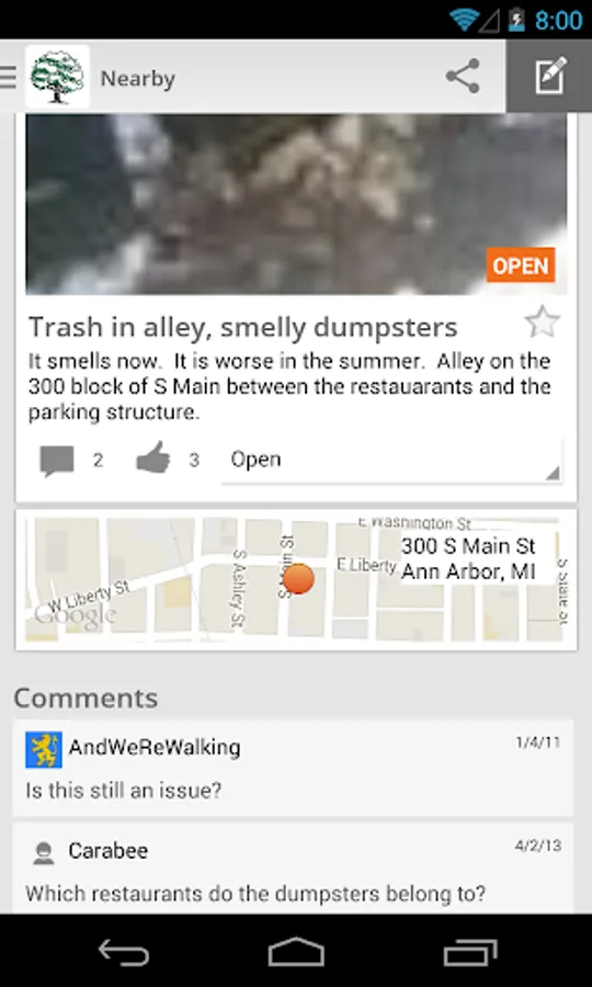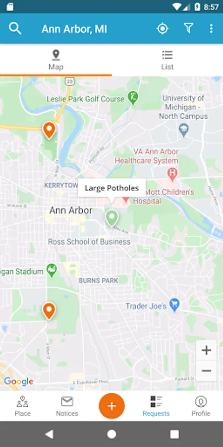 See it, report it, get it fixed. From potholes to tree branches, the City of Ann Arbor’s new “A2 Fix It” system makes it simple and fast to notify City Hall of problems in our community. This app provides users the ability to track service requests, their own as well as others, and be notified when issues are resolved. The app’s GPS recognizes your location and has an easy to navigate menu of common issues. Users can report missed cart pickups, dark street lights, street tree problems, sidewalk hazards, clogged storm drains, graffiti, missing traffic signs, street flooding, park maintenance issues, and much more.