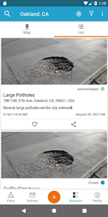 Oakland 311 (OAK 311) makes connecting with the City of Oakland, California easier than ever. You can quickly report non-emergency issues (such as potholes, graffiti, or damaged sidewalks), and even attach a photo of the issue. You can also comment on and follow issues that have been reported by others in Oakland. The exact location of the issue can either be pulled automatically using GPS or adjusted manually. Once submitted, the report will be directly routed to the appropriate department within the City of Oakland and you will be notified when action is taken. Community members can follow and comment on your submission. In addition, the app can be used to connect to the City of Oakland on social media, find out the latest news, check out upcoming events, and more! OAK 311 makes it easier than ever to reach out to the City!
