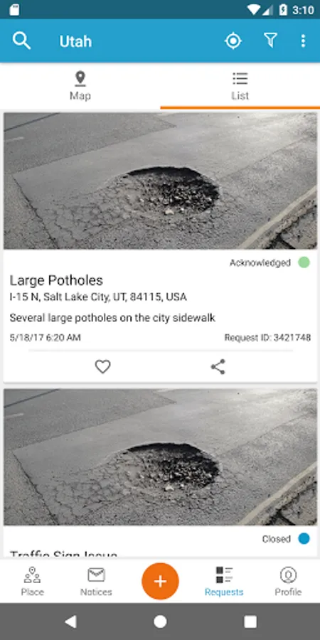 UDOT Click ‘n Fix allows you to report issues you see on Utah’s state highways and interstates, like potholes or signal problems, directly to the Utah Department of Transportation. You simply drop a marker on the map where you noticed a concern, answer a few questions to help us understand what needs to be fixed and include a photo when possible. You can even comment on issues others have submitted. We’ll notify our crews and get it fixed as quickly as possible and let you know as soon as we have it resolved.