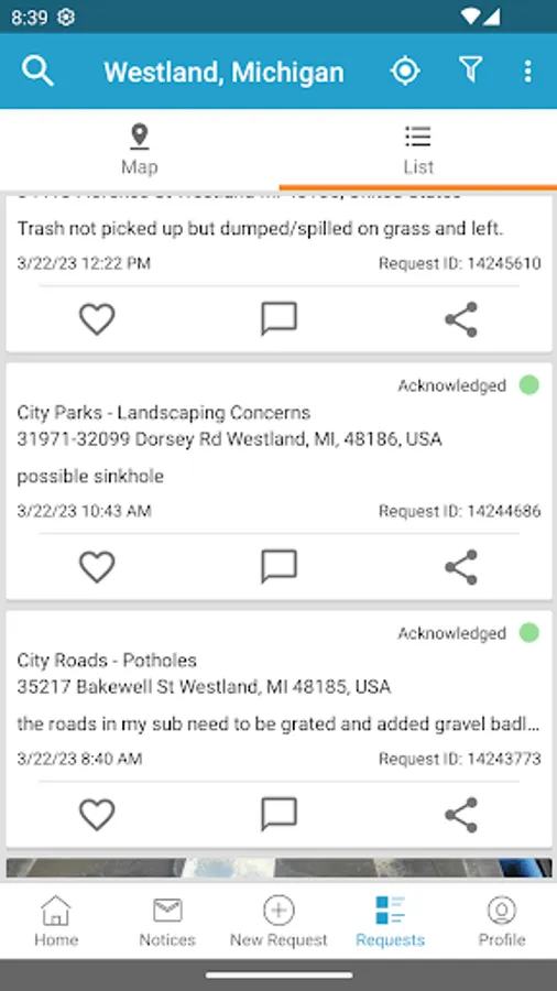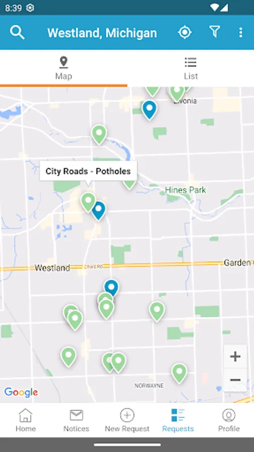 The official Westland app is your connection to events, news, and activities. Report issues in your neighborhood, receive status updates on their resolution, and vote on issues that are important to maintaining your community’s well being. The app’s intuitive interface puts the power in your hands to explore and become an active participant in your local government. Connect directly with Westland on Facebook, Twitter, and the City’s website.
