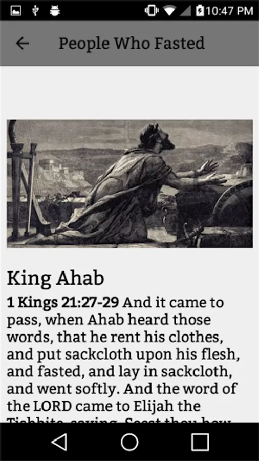 Learn about what fasting is, how to fast spiritually, the power of spiritual fasting 💪, and much more. Fasting can be used as more than just a way to diet. The app highlights the spiritual fasts conducted by believers in the Bible (i.e., Moses, Daniel, Jesus, Esther, Nehemiah, etc.) and the result of their fasting.
