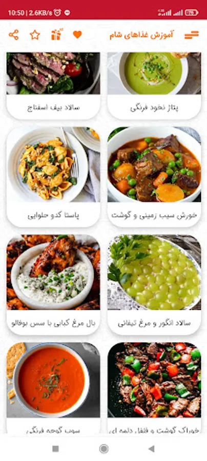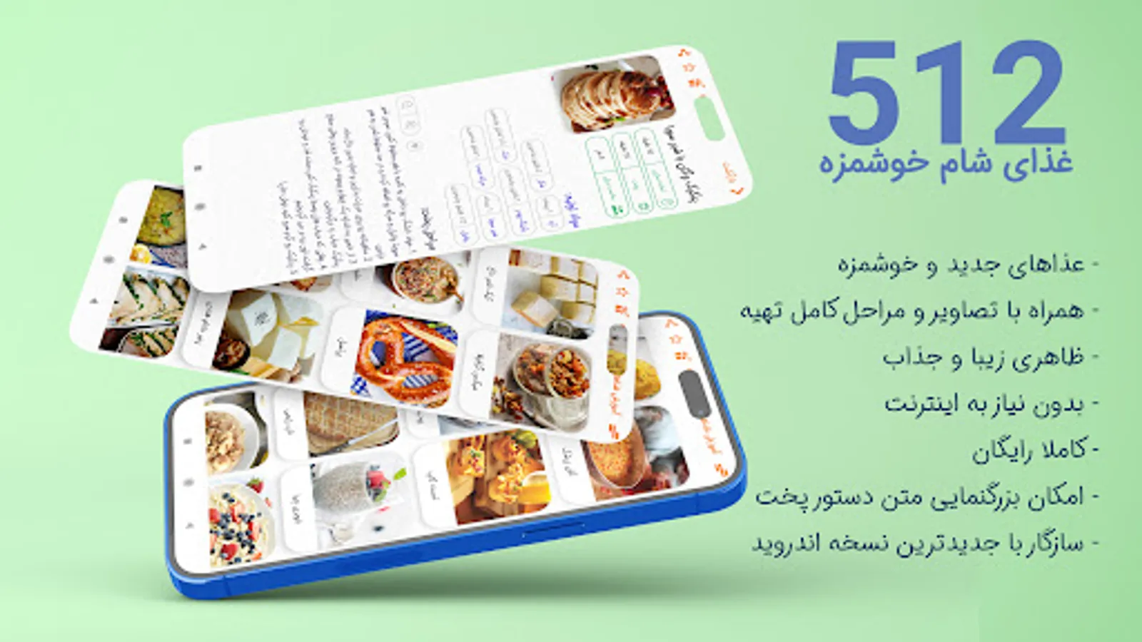 512 delicious dishes suitable for dinner with pictures, ingredients, and complete preparation steps are collected in this cooking application. This free dinner app has a beautiful design and is compatible with the latest Android versions. Preparation time and cooking time are also mentioned in this cooking program. You can also bookmark your favorite foods and add them to the favorites section.