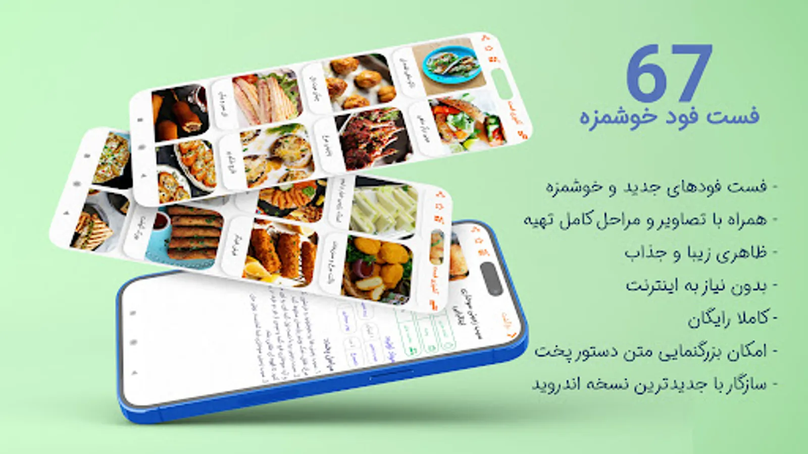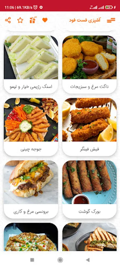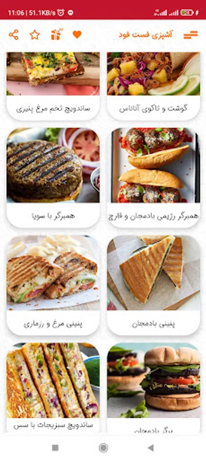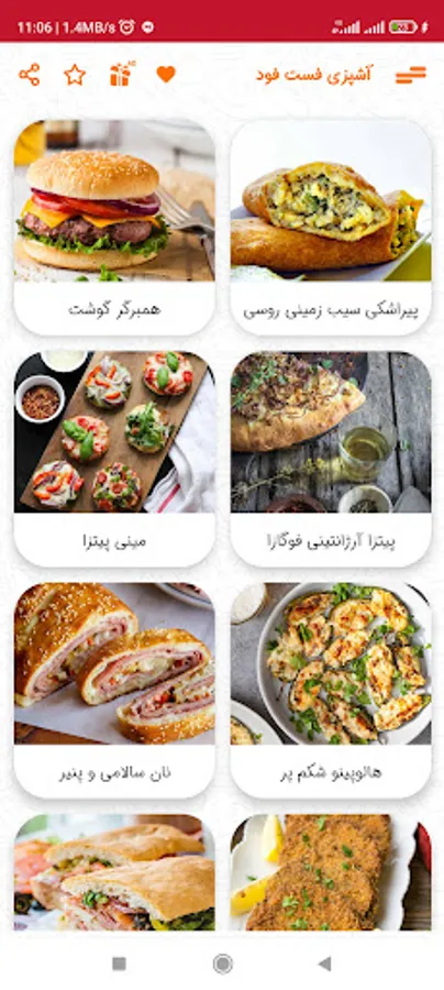 Cooking training for 63 types of fast food (pizza, sandwich, burger) along with pictures, ingredients, and complete preparation steps have been collected in this cooking application. This free fast food app (pizza, sandwich, burger) has a beautiful design and is compatible with the latest Android versions. In this fast food cooking program, the preparation time and cooking time are also mentioned. Also, you can mark your favorite fast food and add it to the favorites section. If you always have this question of what kind of fast food to cook, this cooking app offers all kinds of sandwiches, pizzas, hamburgers and... Suitable for you!