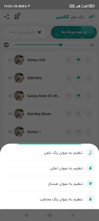 This is a free ringtone program without the need for the Internet, and also in this program, it is possible to choose any of the Samsung Galaxy S 23 ringtones for the phone ringtone, SMS ringtone, clock ringtone (alarm) and set for a specific contact's ringtone. There is.