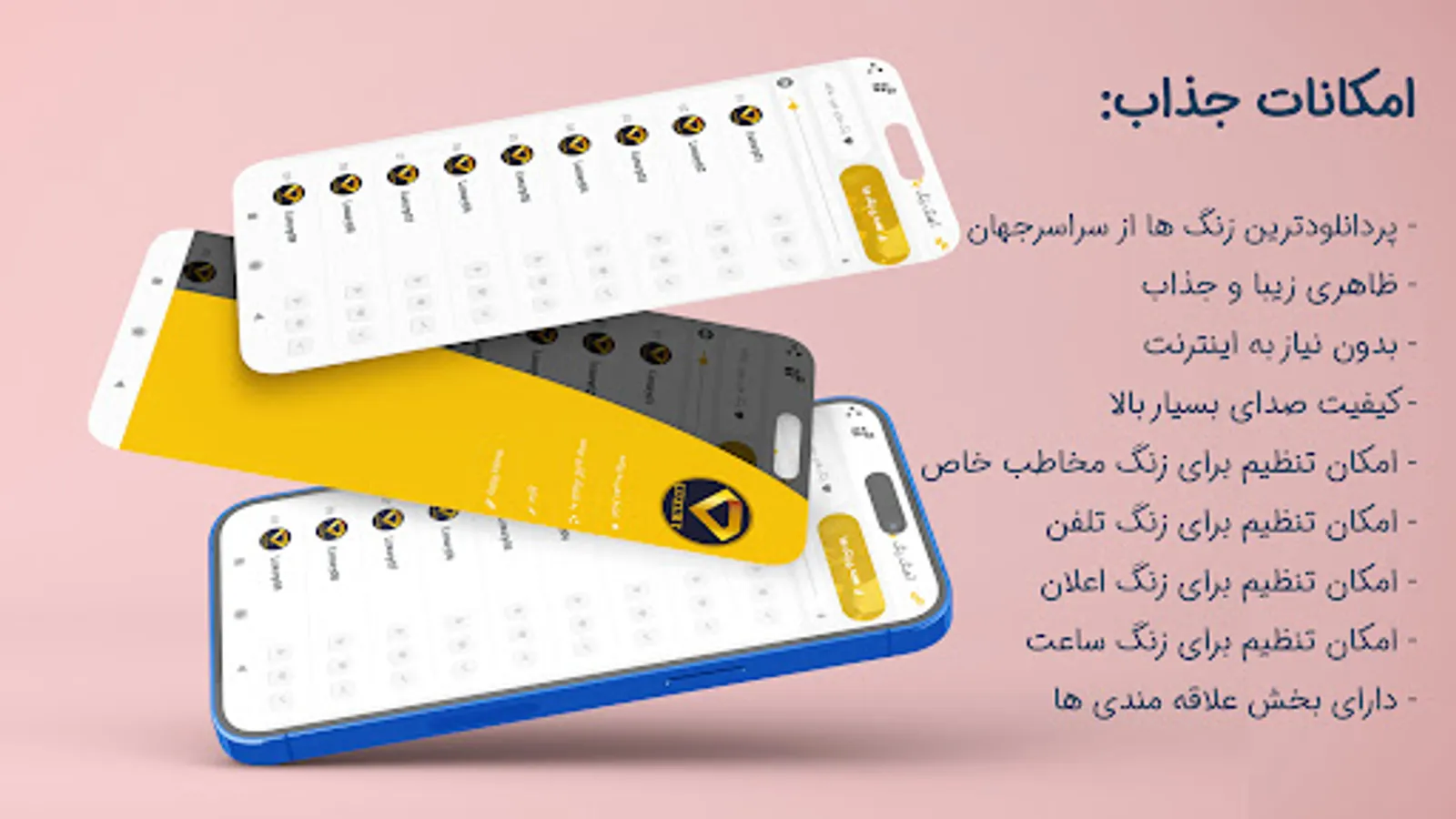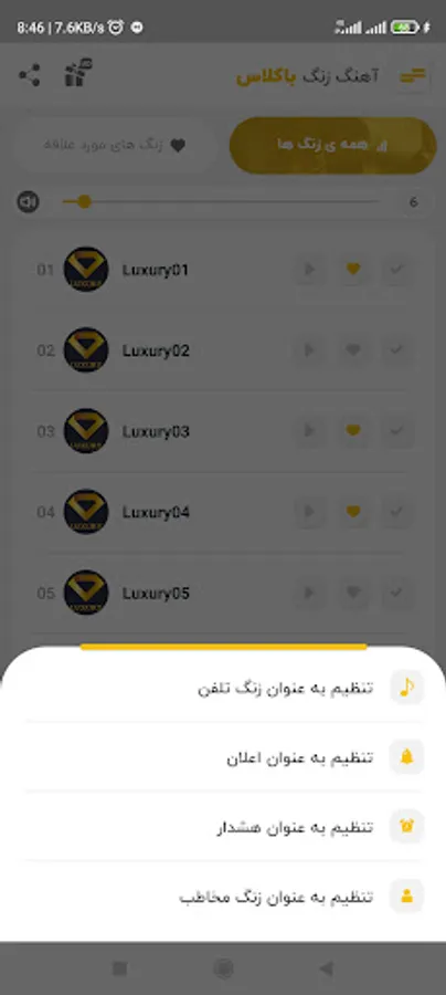 This is a classy free ringtone program without the need for the Internet, and in this program, it is possible to choose any of the ringtones for the phone ringtone, SMS ringtone, alarm clock (alarm) and set for the ringtone of a specific contact.