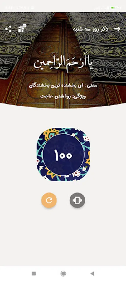 The prayers of Amir al-Mominin with pleasant sounds in the menu also have parts such as (familiarization with the prayers of Amir al-Mominin, mention of the days of the week, counter of the rosaries of Hazrat Zahra (PBUH), counter of salutations and instructions for working with the application.