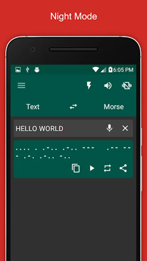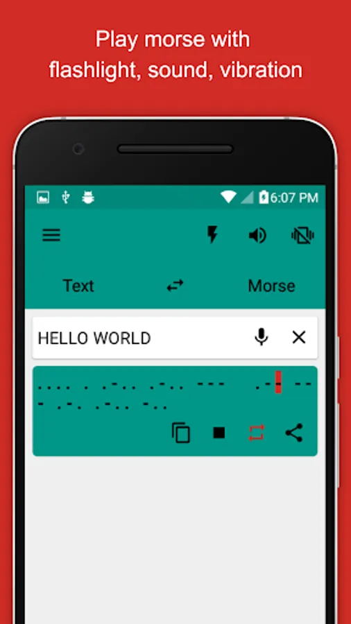 – Playing Morse code output using vibration, flash, and audio tone 📳 🔦 📢