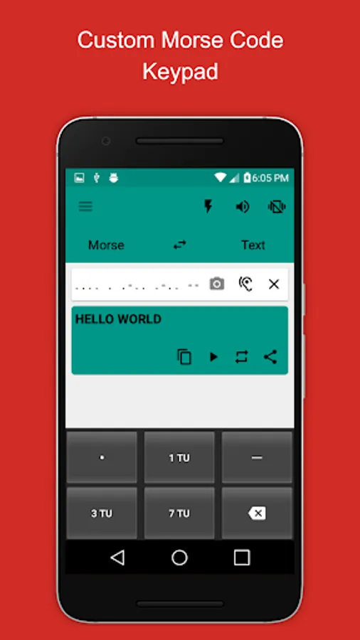 – The ability to enter Morse code input using either a Morse code keyboard, the volume buttons on the side of your phone, or a Morse code button