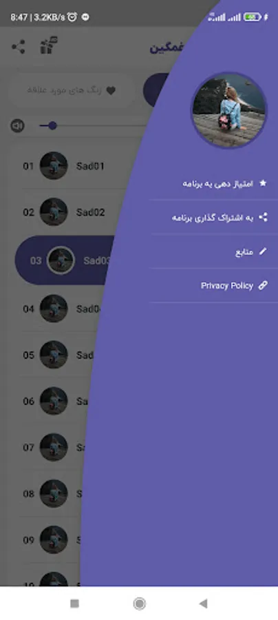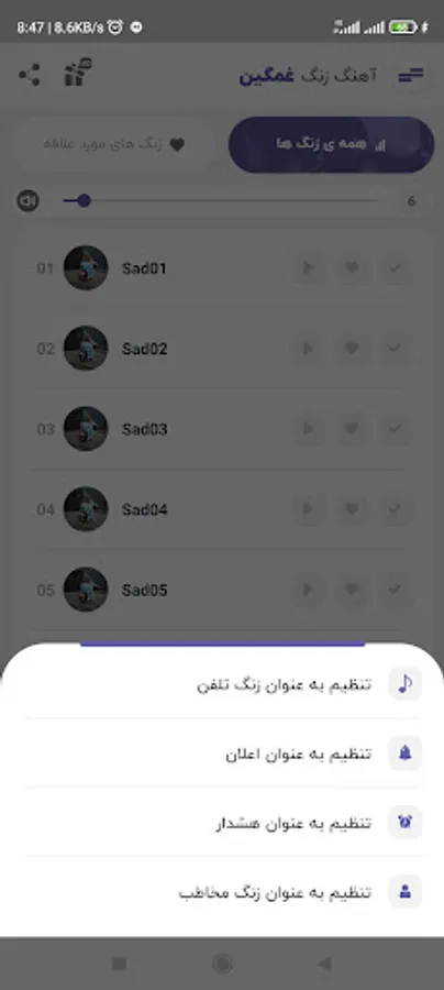 This program is a free sad ringtone without the need for the Internet, and in this program it is possible to choose any of the ringtones for the sad phone ringtone, sad SMS ringtone, sad clock ringtone (alarm) and setting for a specific contact's sad ringtone.