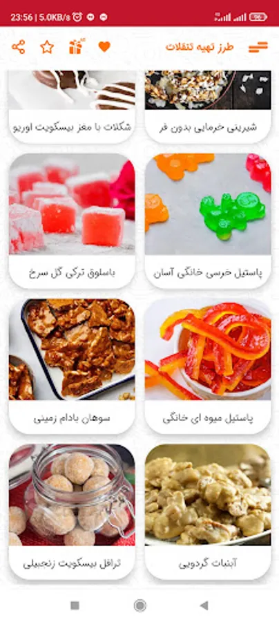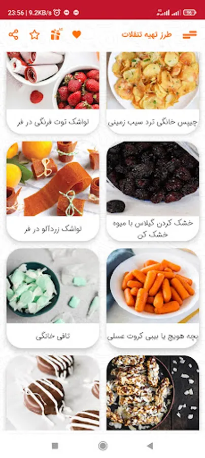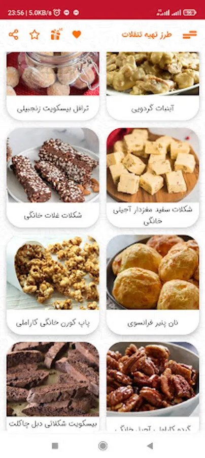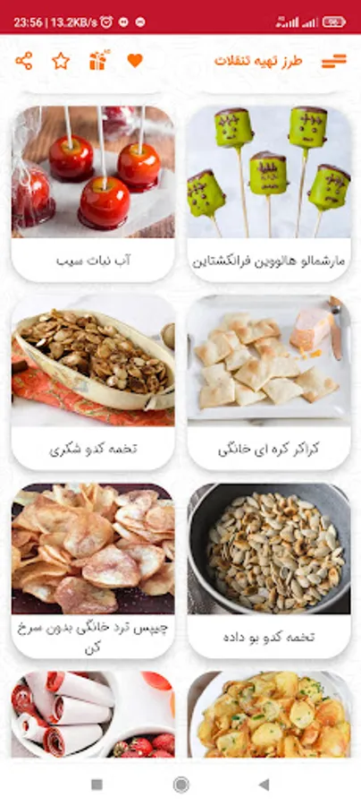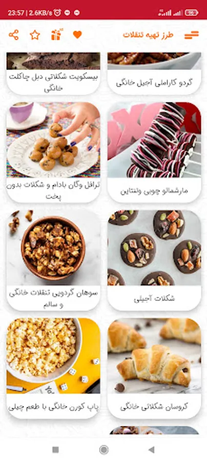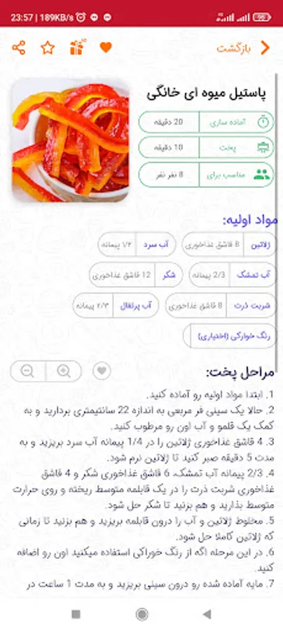 How to prepare all kinds of snacks, pastilles, chocolates, new lavash along with pictures, raw materials, and complete preparation steps are collected in this cooking application. This app has a beautiful design and is compatible with the latest versions of Android. Preparation time and cooking time are also mentioned in this cooking program. You can also mark your favorite foods and add them to your favorites. and...) is suitable for you!