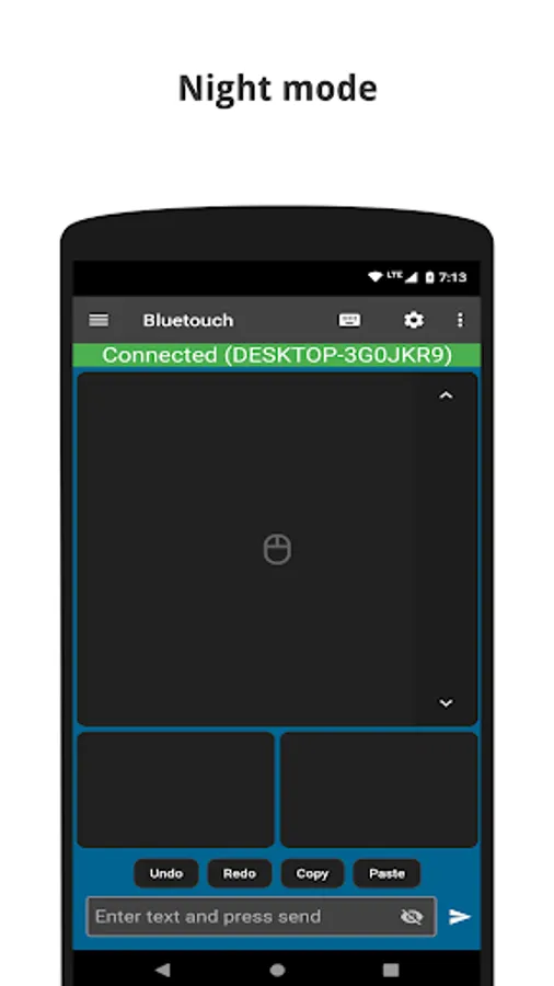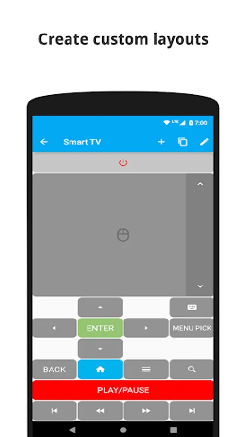 In addition to the default keyboard and mouse layout, the app supports creating and using custom layouts. With custom layouts, users can create their own smart TV remote, presentation remote, game controller, or other type of Bluetooth interface.