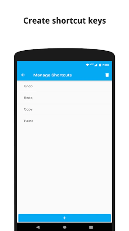 The app supports creating shortcut keys that can send up to six different keyboard keys simultaneously. For example, a user can create a shortcut key that sends the ctrl, alt, and delete keys at the same time.