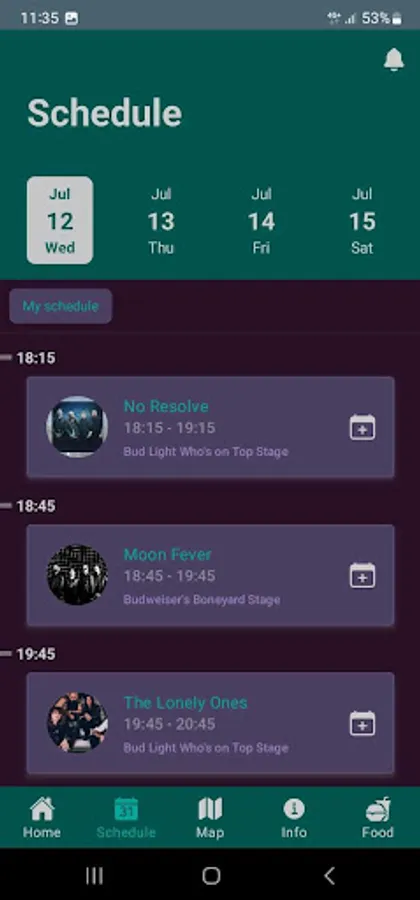 A custom schedule: see when and where each artist is performing. Star your favorites and share with friends.