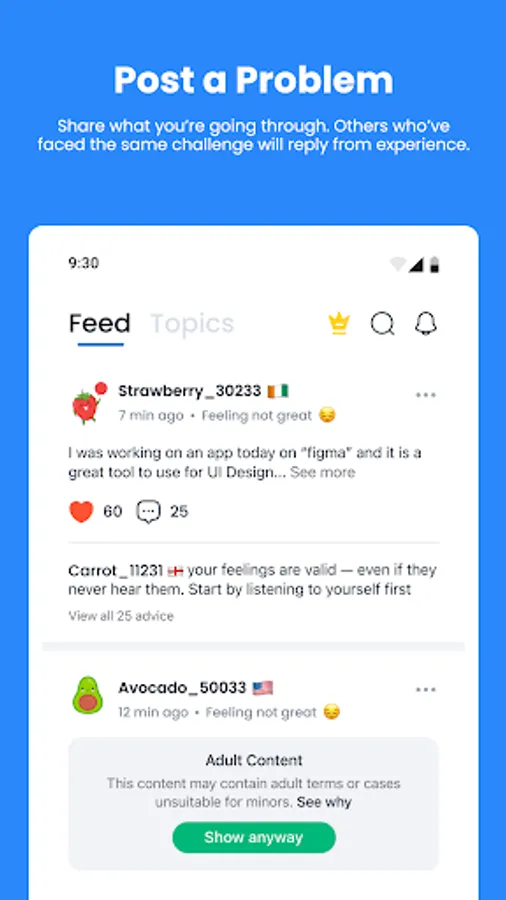 To keep this space safe and welcoming, Toheal uses a blend of AI and human moderation. All content is reviewed to uphold community standards and protect users from harmful behavior. Posts containing adult or sensitive topics are allowed but hidden by default—viewable only by users who choose to engage with them. This thoughtful approach protects individual comfort while preserving freedom of expression.