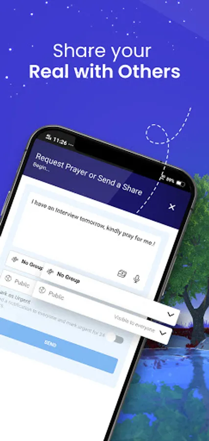 ● Prayers can be chosen to be made visible publicly or can be added to a specific group or to only tagged users.
