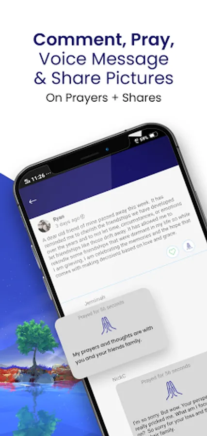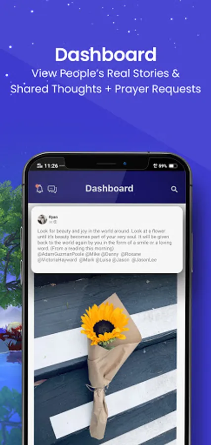 ● Create a prayer or share your positive thoughts by writing a post and have the option to attach photos and voice notes.