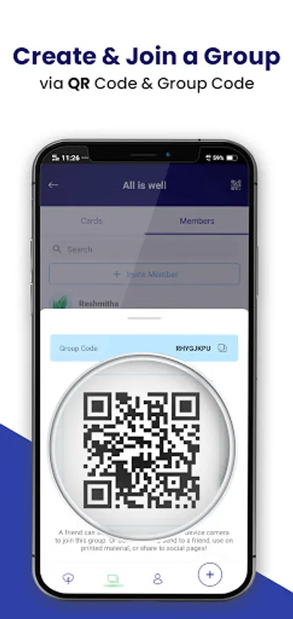 ● You can share the group code through the copy or QR Code option, for people to join your group.