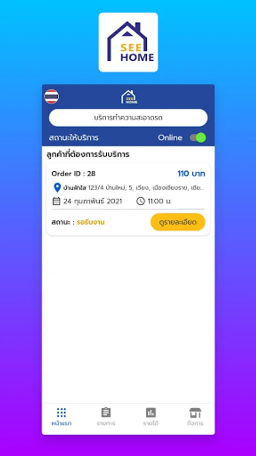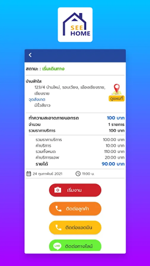 Whether it is a maid service, laundry, air conditioner cleaning, insect control, garden care, we will send qualified technicians who are partners with us to follow to the house. The customer's condo or office in a short time. In which the service recipient does not have to leave the house Customers interested in using our services can download applications. Then apply for membership to reserve the service !!