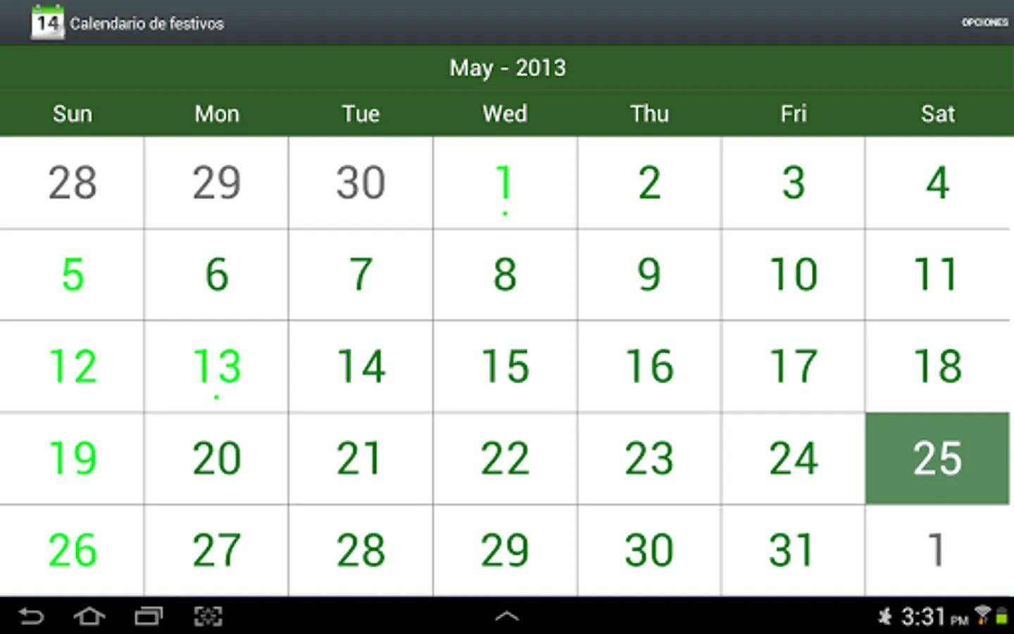 . 1 Check holiday information: You just hold the day and the information appears.