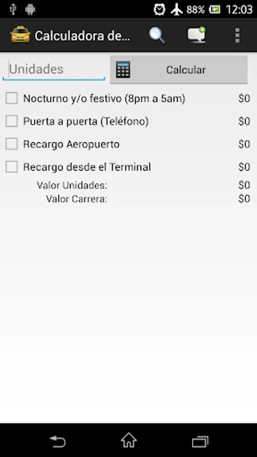 NOTE: This application has the rates for Bogota (Colombia), in next versions will add more cities.