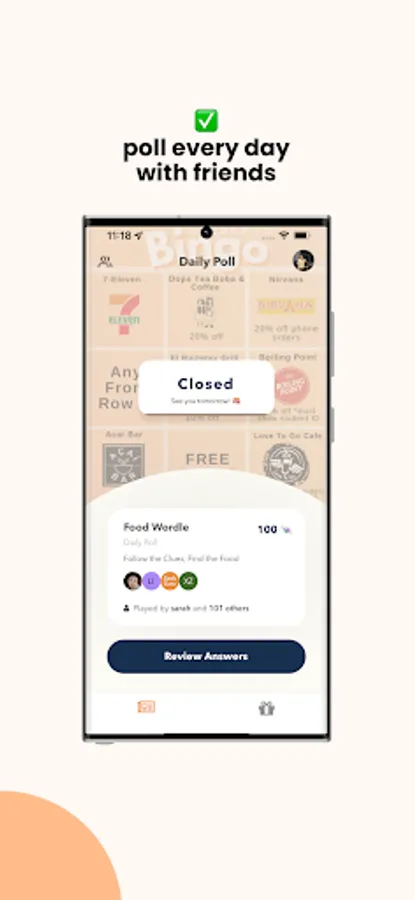 We strive to provide a platform for small businesses to showcase their unique cuisines and connect with the community. We offer a unique twist on traditional discounts. You earn exclusive discounts by answering daily polls with your friends. Not only do you get great deals on food, but you also get to have fun with your friends while doing it.