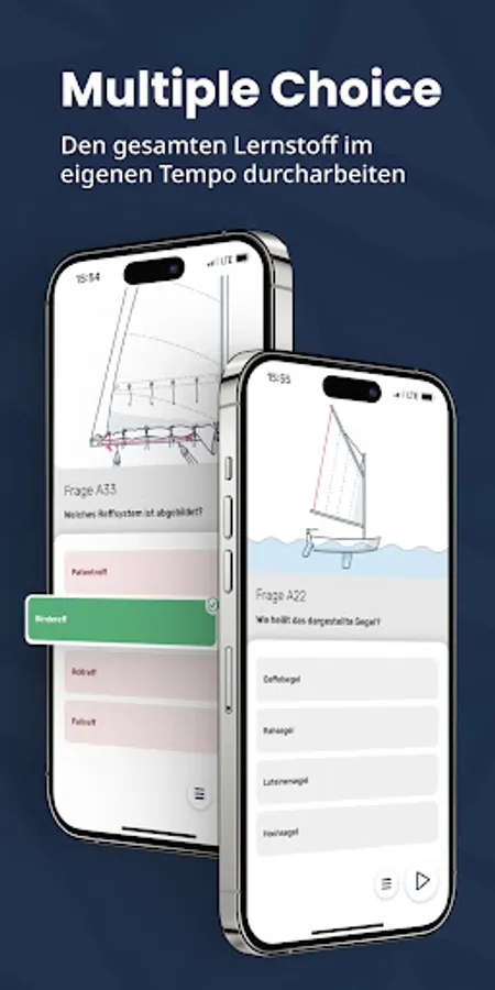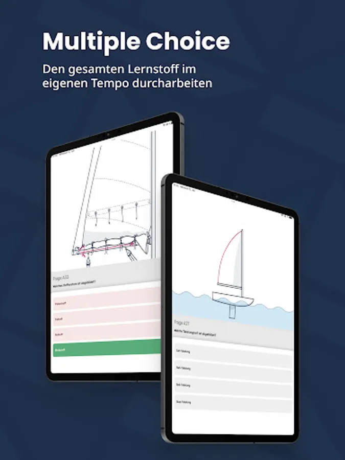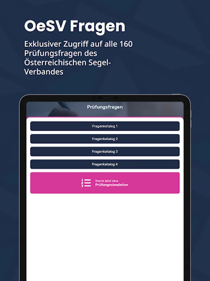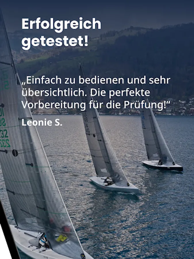 Of course, when preparing for the exam, you sometimes have to look up individual terms. The integrated term search makes it possible! Thanks to the support of the Austrian Sailing Association, you will also find all 160 exam questions in the exam preparation section. Unlock them with the training questions and use them to your advantage.
