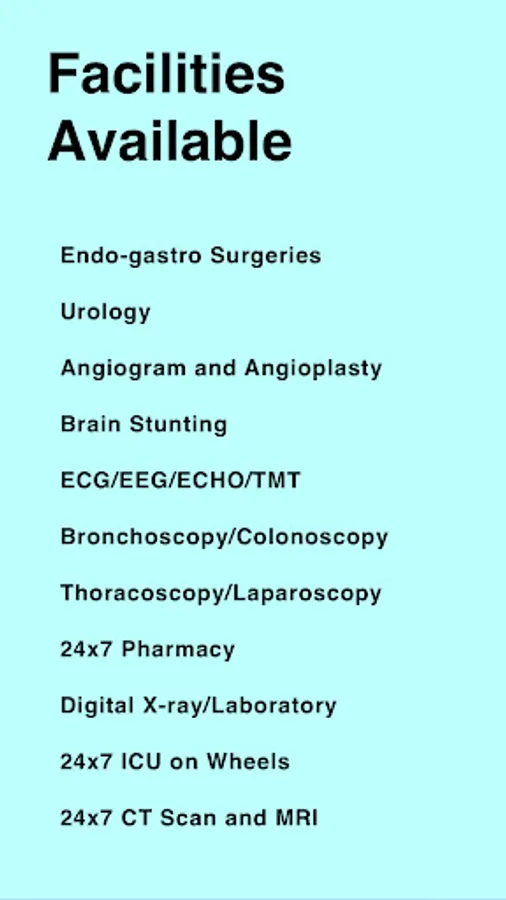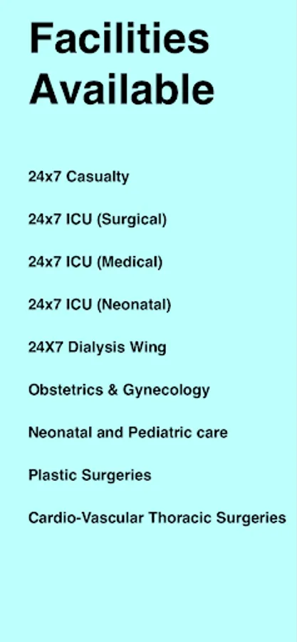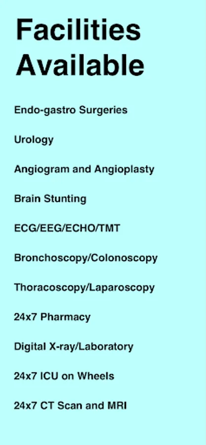 • 24x7 Pharmacy/Digital X-ray/Laboratory