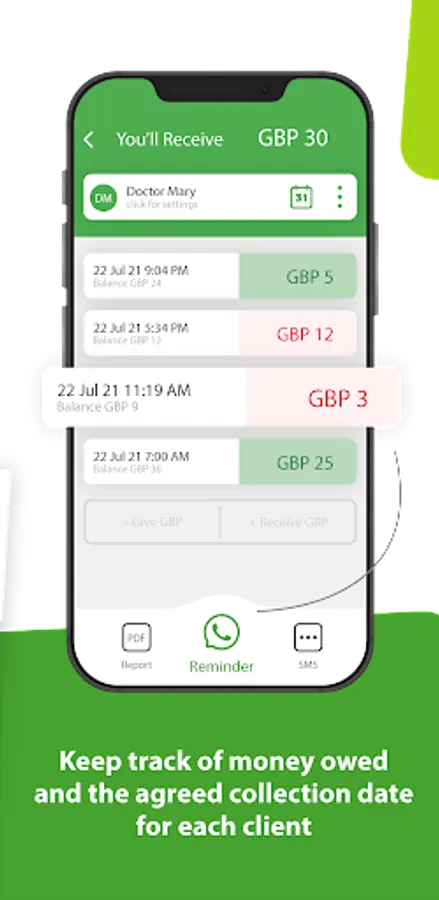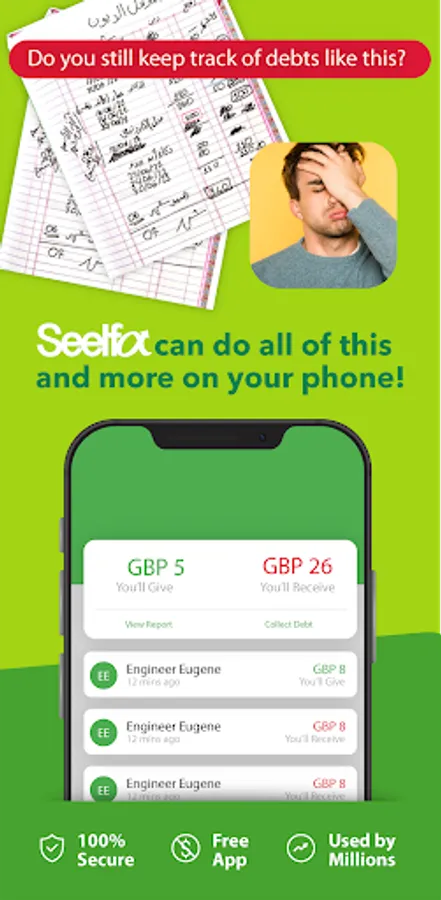Seelfa provides you with a digital debt book and cash book to record transactions, send payment reminders and receive payments from your clients.