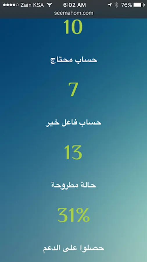 The application link between the needy and the donor directly from all the cities of Saudi Arabia, so that geographical boundaries do not remain prohibitive for the needy to present the case of emergency needs has to wisher in various cities. The donor can from the city of Dammam, for example, see the cases of need in the city of Abha to choose one of them and provides support.