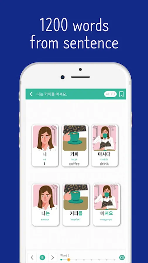 There are 5 characters within the 650 sentences that share stories of everyday life. These characters create relationships of friendship and love between each other. These characters will foster your desire to keep on learning the Korean language.