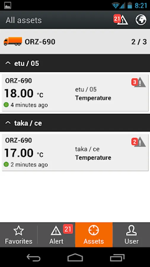 - Login to demo account from mobile app to view real time measurements, routes and alerts