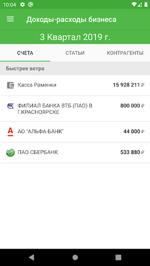 The application helps to quickly analyze the income and expenses of the company on a cash basis based on data on cash flows in current accounts and cash registers.
