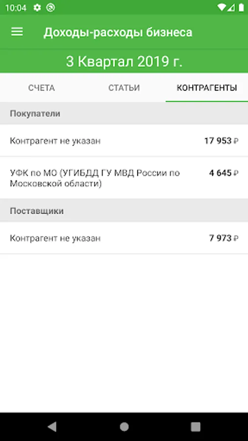 The section shows which counterparty you pay the most funds for and with whom you make the least payments. Compare the development plan of the company with the given data. This will help to adjust the strategy of working with partners.