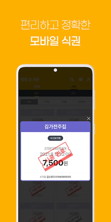 I put an uncomfortable paper meal ticket on my smartphone in my hand. You no longer need to take and manage paper meal tickets or corporate cards with each meal.