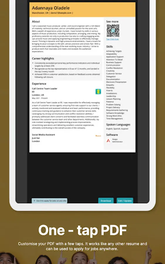 Apply for jobs anywhere - Once you're set up, you won't need to bother with managing your resume on Word or any other tools. You can effortlessly handle it online or through the app, anytime and for as long as you need.
