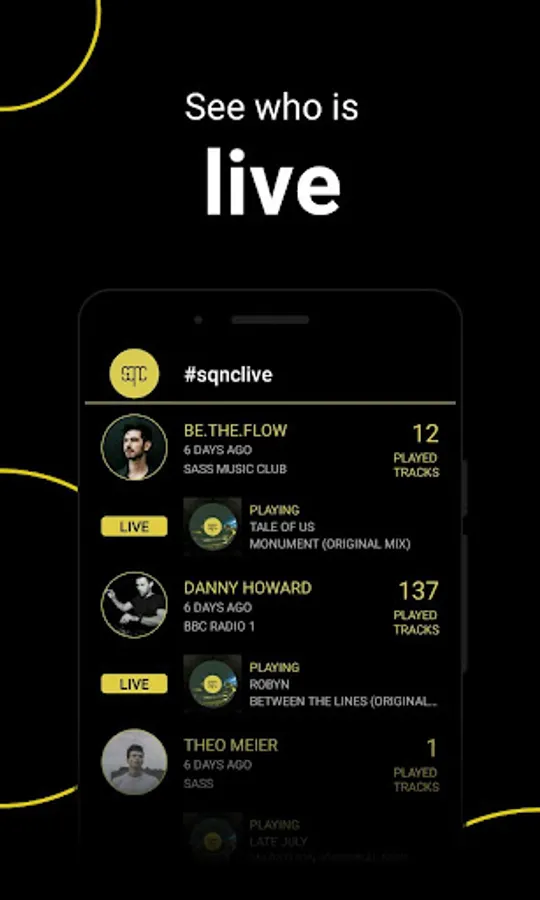 see who's playing your tracks. seeqnc enables any producer, artist and music to use music in real-time! Use the seeqnc App to detect tracks on your gigs and get notified when others are playing yours.