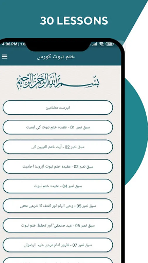 • Users can read Khatm-e-Nabuwwat Course by lessons.