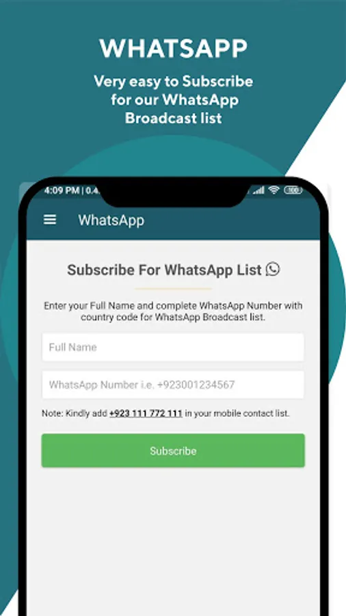 • Users can easily subscribe to Seeraht Institute WhatsApp Broadcast List via this Mobile App.