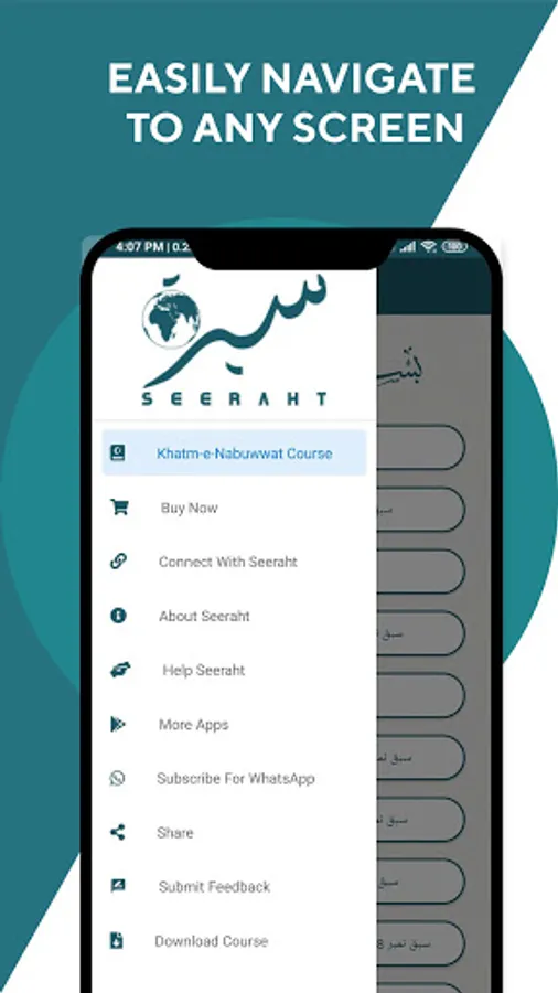 • Users can easily navigate to any screen of the Khatm-e-Nabuwwat Course mobile app.