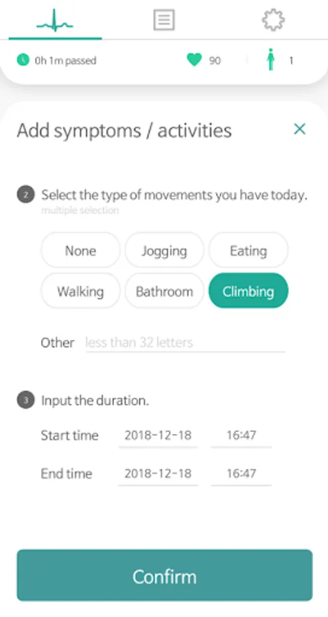 * The wearable bio patch collects the ECG signals, and you can configure the settings and transfer the collected data to the cloud server with the app.