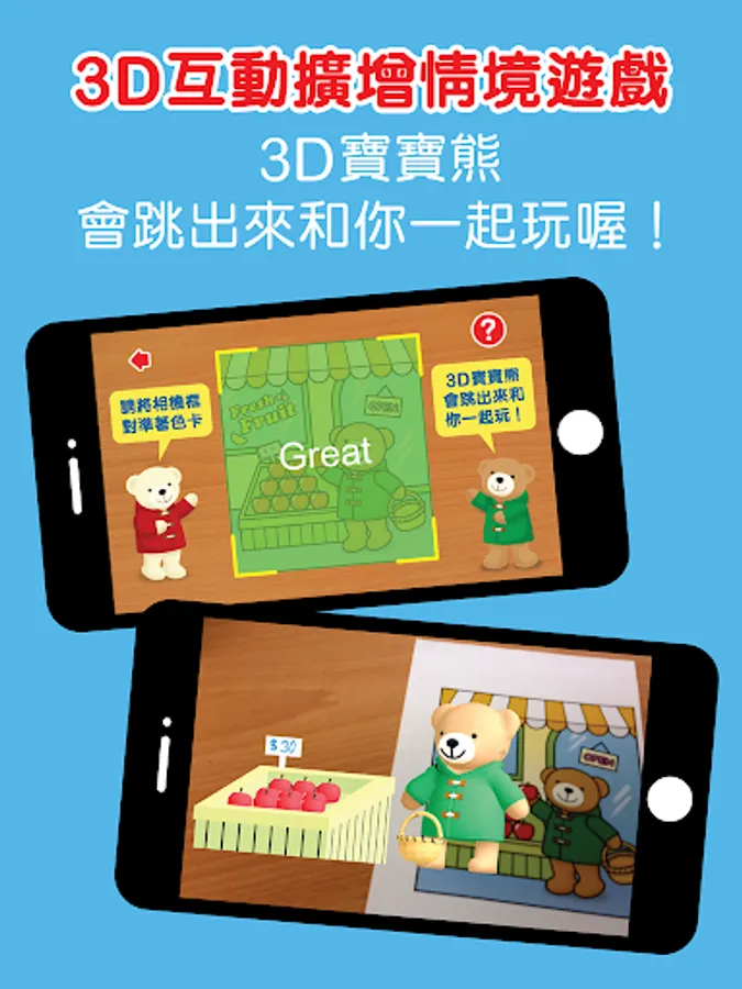 ★3D互動擴增情境遊戲, 3D寶寶熊會跳出來和你一起玩喔。