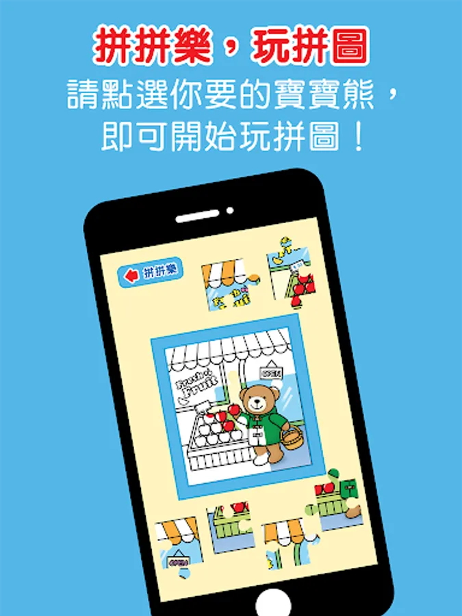 ★拼拼樂,玩拼圖:請點選你要的寶寶熊,即可開始玩拼圖!